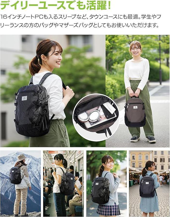 長時間の使用でも疲れにくく、ハイキングなどのアウトドアから普段使いまで幅広く対応するバックパックです。
