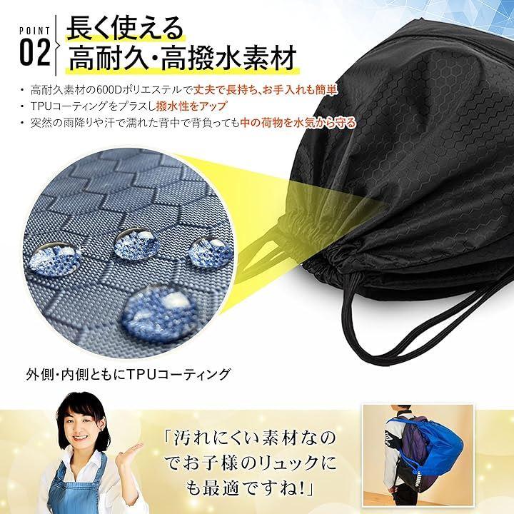 耐摩耗性・防水性・乾きやすさを備えた600Dポリエステル生地を使用し、雨や汗から荷物を守り、清潔感を保てます。