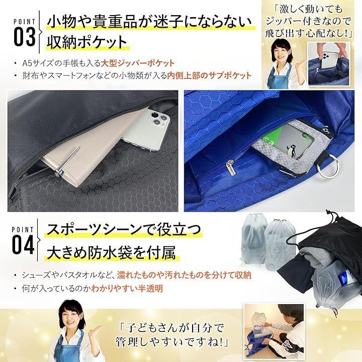 スポーツ、旅行、学校など多用途に対応し、広々とした内部スペースで着替えやボールも収納可能。