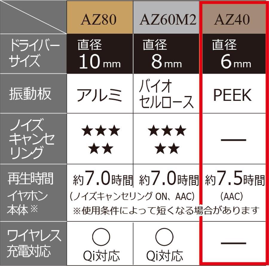 ブランド パナソニック(Panasonic)モデル名 Panasonic EAH-AZ40色 ローズゴールドヘッドホン型式 インイヤー接続方式 無線ワイヤレス通信技術 Bluetooth特徴 マイク付き付属品 付属品:USB充電ケーブル:約0.2 m (入力:USB Type-A 形状、出力:Type-C 形状) イヤーピース:XS、S、M、L 各2個(Mはイヤホンに装着)ヘッドフォンジャック 3.5mmジャック耳の位置 インイヤー