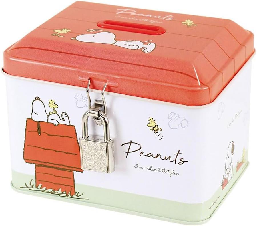 スヌーピーカギ付き缶バンク のんびりドッグハウス小物やアクセサリーを入れるのにもピッタリなサイズ サイズ(約):H84×W113×D83mm 素材・材質:ブリキ 原産国:中国