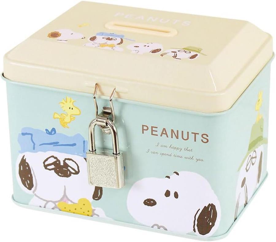 スヌーピーカギ付き缶バンク おしゃべり小物やアクセサリーを入れるのにもピッタリなサイズ サイズ(約):H84×W113×D83mm 素材・材質:ブリキ 原産国:中国