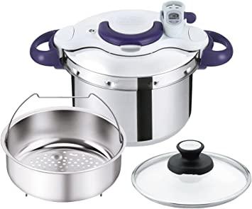 素材・材質:本体/ステンレスSUS304、底/アルミ・ステンレス、取っ手/フェノール樹脂、ふた/ステンレスSUS430、ふたハンドル・パネル/PBT(ポリブチレンテレフタレート)樹脂、タイマー/PBT・GF・PET・シリコン、ふた(ガラスぶた)/全面強化ガラス、ふたつまみ/フェノール樹脂・ナイロン・ステンレス、セレクター(おもり)/ナイロン66、パッキング/シリコン、中かご/ステンレス