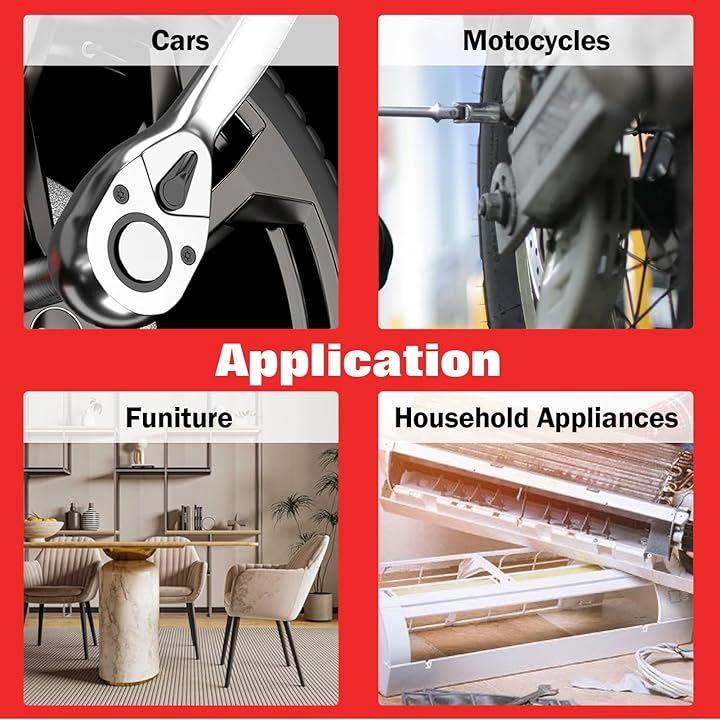 用途:1/4インチドライブのラチェットは家具や家電製品の小さなネジを外すのに最適で、3/8インチのラチェットは自動車やオートバイ、電気自動車の修理に適しており、1/2インチのラチェットは自動車やオートバイの修理に最適である。