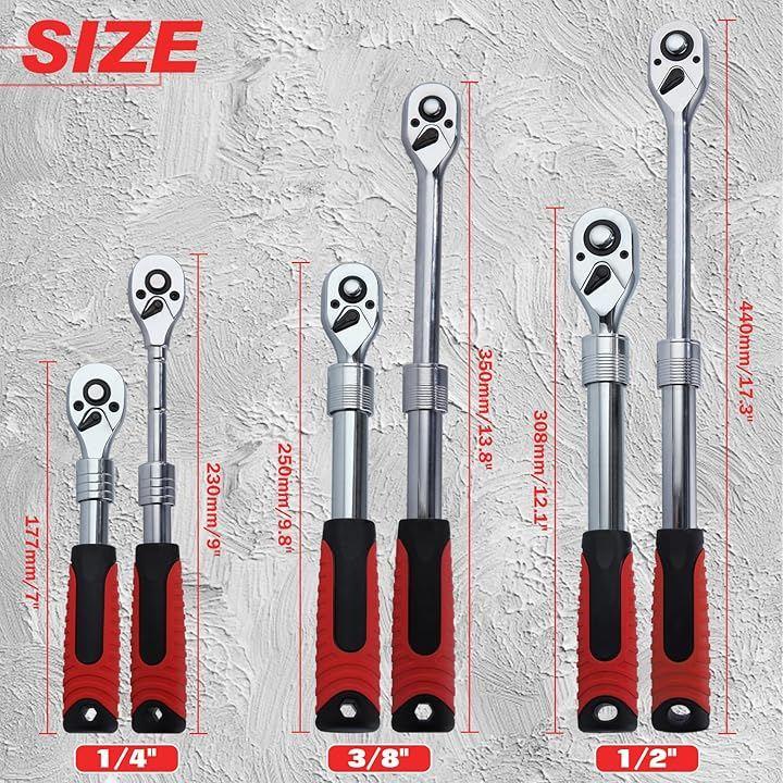 Telescopic Ratchet Set with Ratchet Handle, Quick Release Ratchet Set, Reversible Ratchet, Easy Direction Switching, Quick Release Button, 72 Teeth, Bicycle/Motorcycle