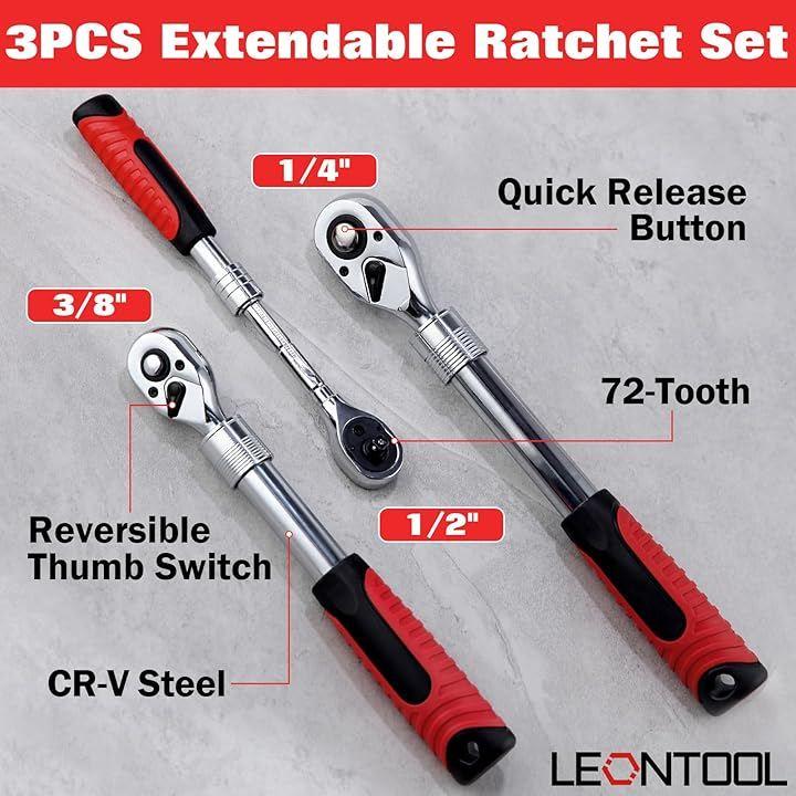 LEONTOOLのこの伸縮式ラチェットセットは、あらゆるメカニックのツールボックスに最適です。