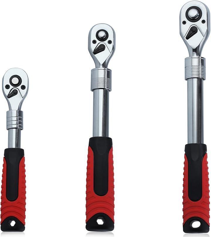 1/4~1/2インチ・ドライブ・サイズの3つのラチェットを備えたこのセットは、困難なボルトやナットにもアクセスできます。