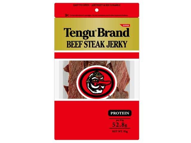 100%赤身ももステーキ肉を、テング秘伝の醤油ダレに漬け込みじっくり丁寧に乾燥させた、ビーフステーキジャーキー。 しっかりとした歯ごたえで、噛めば噛むほど牛肉の旨味が口の中に広がります。【重要】メーカーによる商品リニューアルに伴いパッケージ(内容量も含む)変更が行われた場合、新パッケージでお届け致します事ご了承願います。