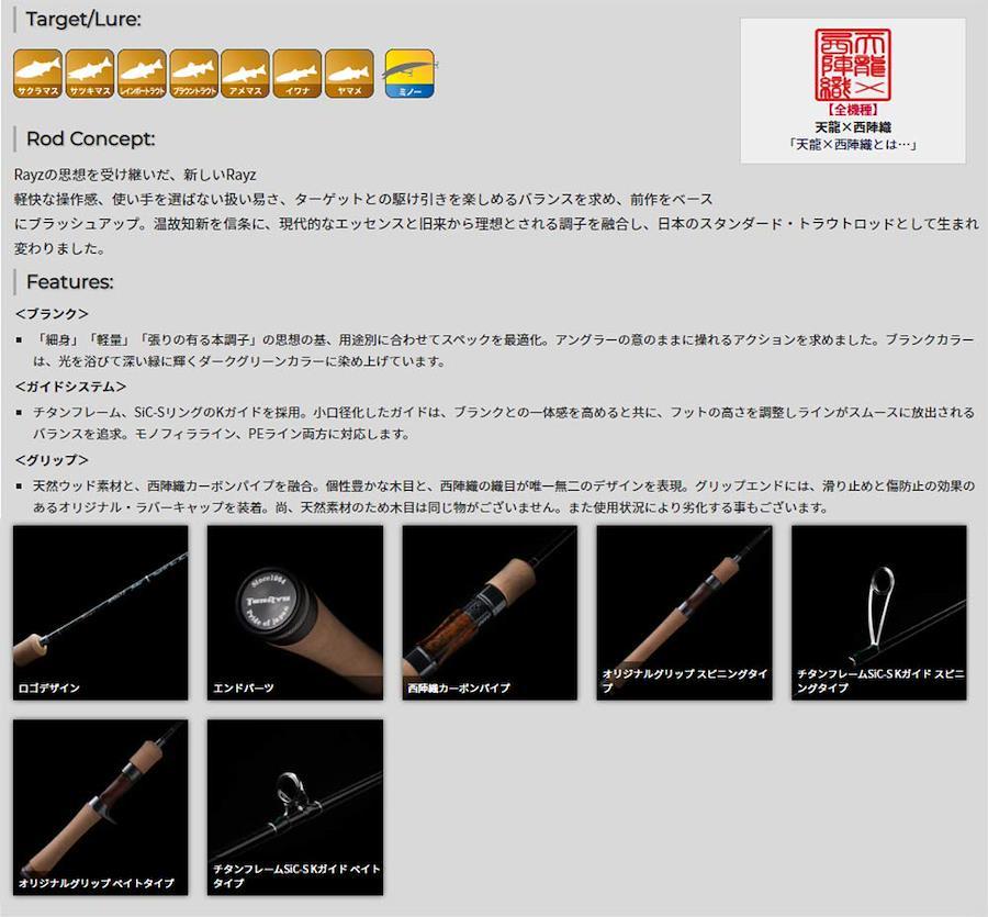 TENRYU Rays Spinning RZ6102S-LML Type: S Total Length (m [ft]): 2.08 [6'10"]