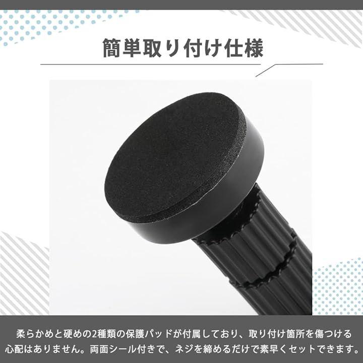 「簡単取り付け仕様」柔らかめと硬めの2種類の保護パッドが付属しており、取り付け箇所を傷つける心配はありません。