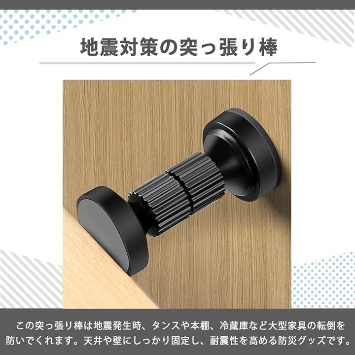 「地震対策の突っ張り棒」この突っ張り棒は地震発生時、タンスや本棚、冷蔵庫など大型家具の転倒を防いでくれます。