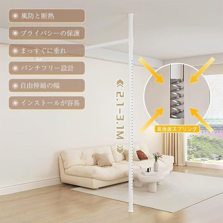 「間仕切りや目隠しに」このつっぱり式 間仕切りカーテンロッドは多目的で、部屋、バスルーム、リビングエリアなど、さまざまな場所で使用できます。