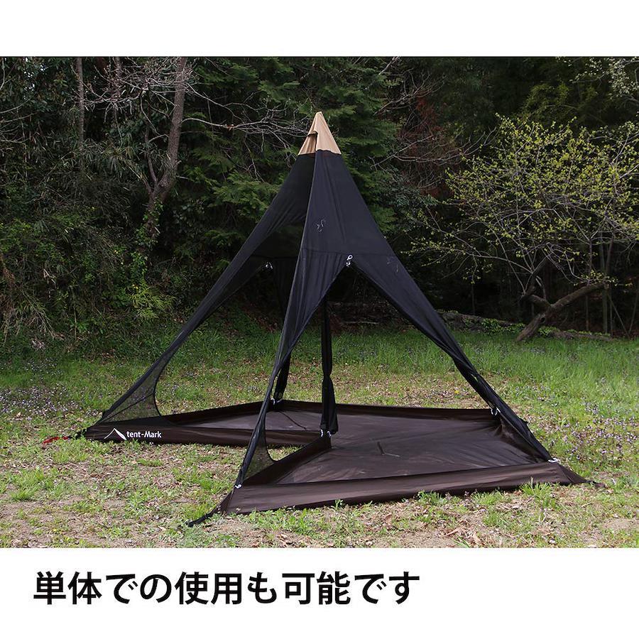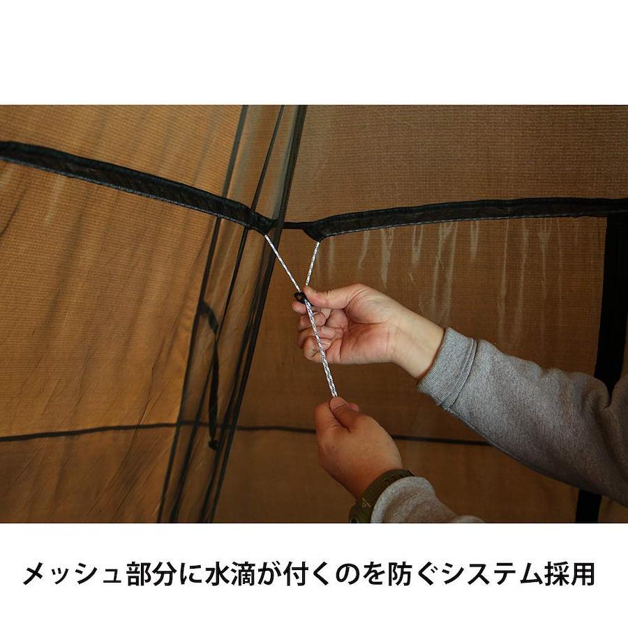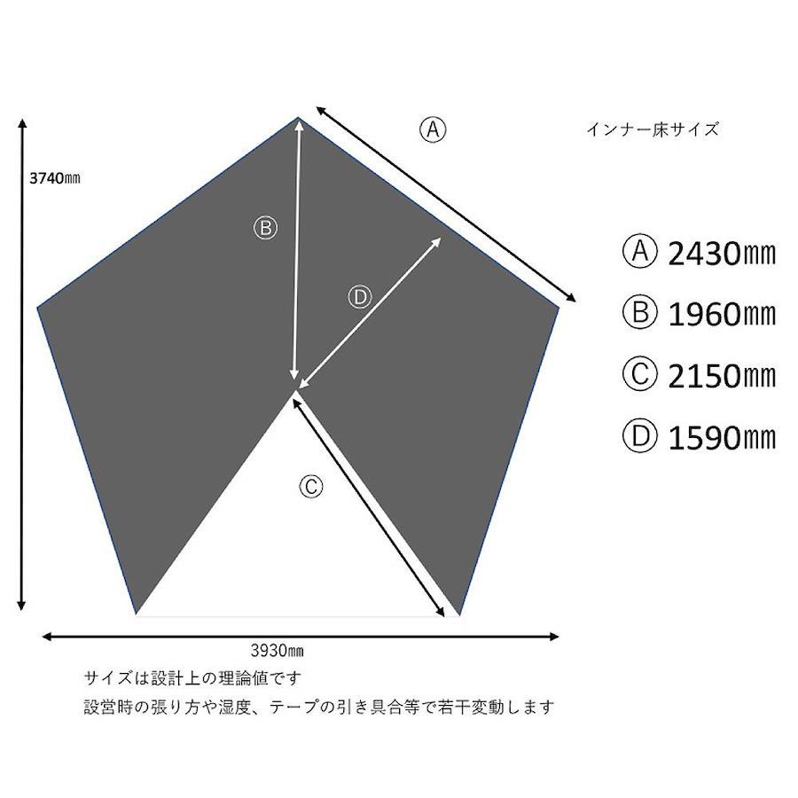 専用グランドシートも付属。従来のインナーより高さがありますので立って着替えができます。(ポールの先端に取り付けます)インナーの中にポールを通す必要がないため設営が簡単です。すべての面に入り口を設け多様な設営に対応します。