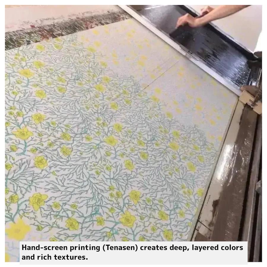 一色ずつ刷り重ねることで、奥行きのある表情と布そのものの質感が引き立ちます。
