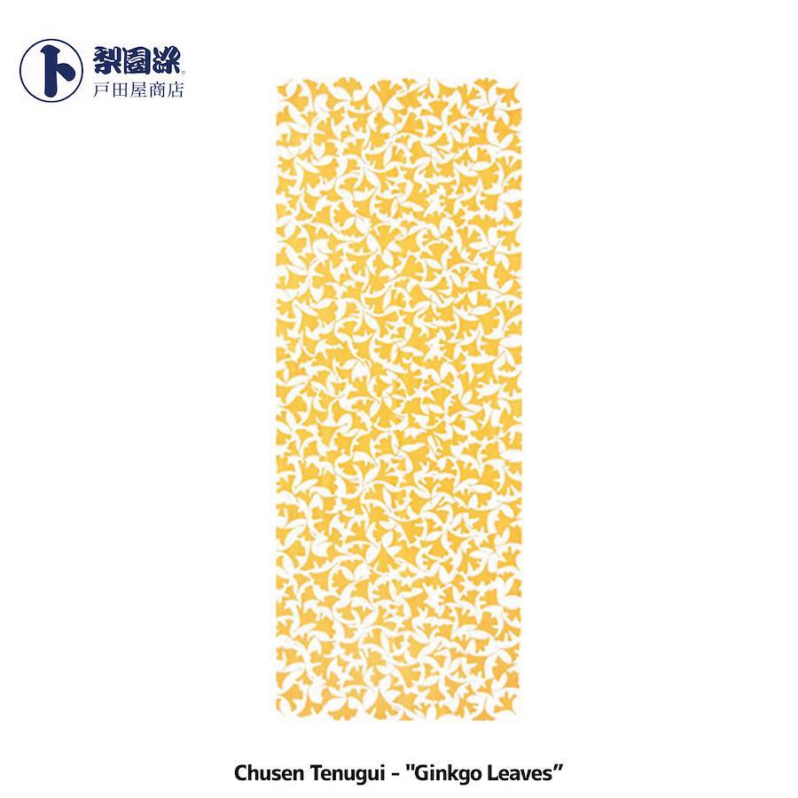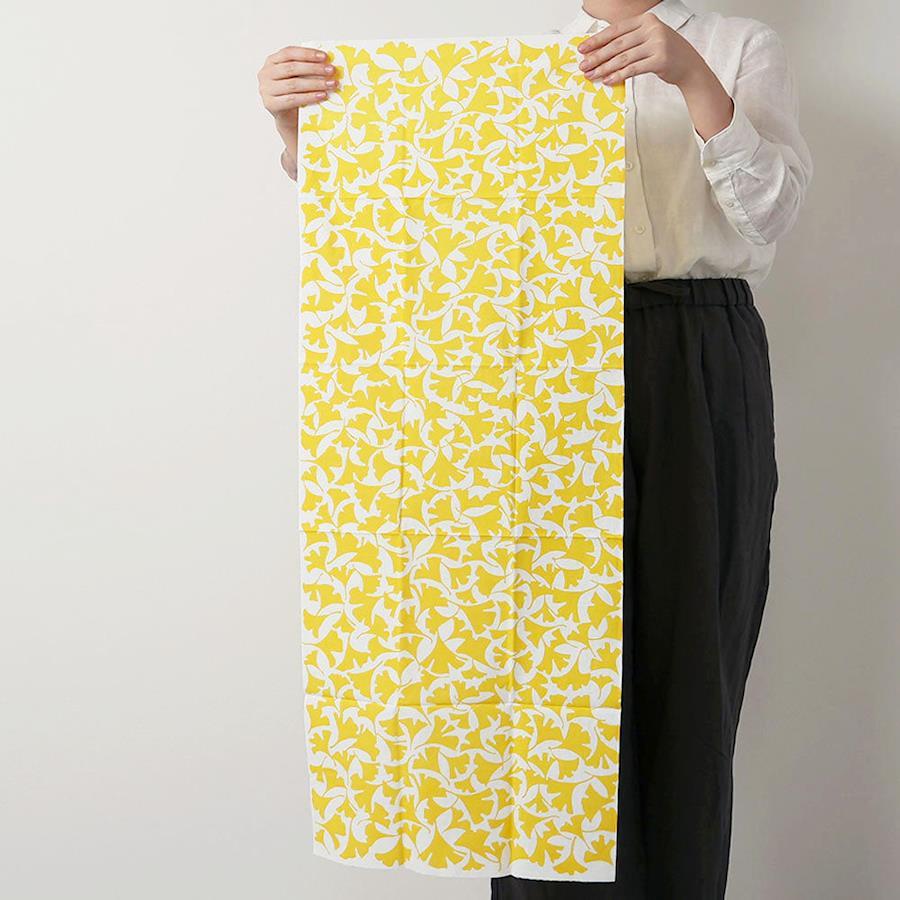 秋の深まりを感じさせる銀杏の葉が描かれた手ぬぐい。伝統的な注染技法で染め上げられたこの一枚は、季節の移ろいを感じさせる美しいデザインが特徴です。