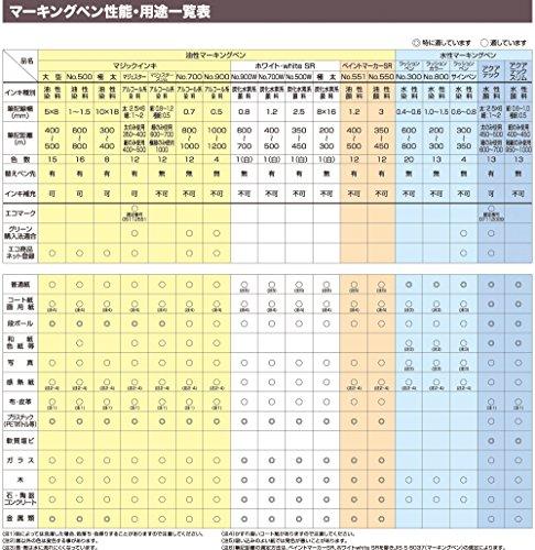 アルコール系インキを採用し、細字(0.8-1.2mm)と極細字(0.5mm)の筆記が可能。