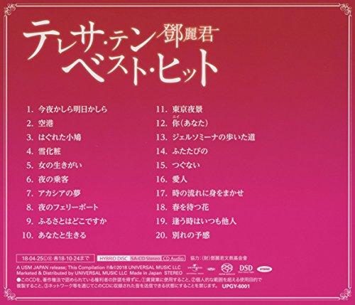 【SACDハイブリッド】【2018年最新DSDリマスター】●あの魅惑の歌声が、超高音質で蘇る! テレサ・テン初となる待望のSACDが登場!●収録されるのはデビュー曲「今夜かしら明日かしら」(1974)から「別れの予感」(1987)まで、アナログ録音の時代に残した代表曲20曲。もちろん、「空港」「つぐない」「愛人」「時の流れに身をまかせ」などの大ヒット曲は漏れなく収めています。●各曲、オリジナルのアナログ・マスター・テープに立ち返ってトランスファーしたDSD素材をコンパイル。テレサのファンはもちろん、女性ヴォーカルを良い音で聴きたいオーディオ・ファンにもお薦めしたい1枚です。ストレスなく耳に届くスケール感、柔らかでアナログライクな質感、眼前に繰り広げられる実在感、空間の奥深くに展開する立体感、どっしりと引き締まった安定感等々、SACDならではのクオリティをお楽しみください。●ハイブリッド仕様/歌詞つき