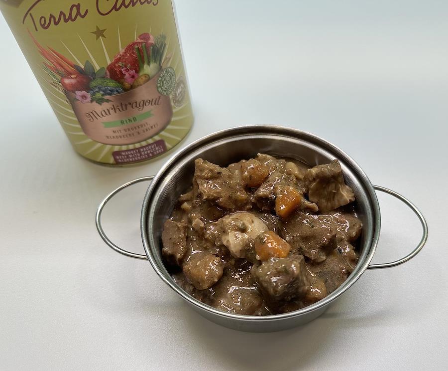 「新食感の「テラカニスのラグー(煮込み料理)」家庭で調理されたラグーのように柔らかくジューシーなお肉・さいの目に切った色とりどりの野菜と果物のミックス・そして心のこもった愛犬のためのユニークで美味しさが伝わる、絶品の香りの食事となっています。ぜひ香りと共にお楽しみください。