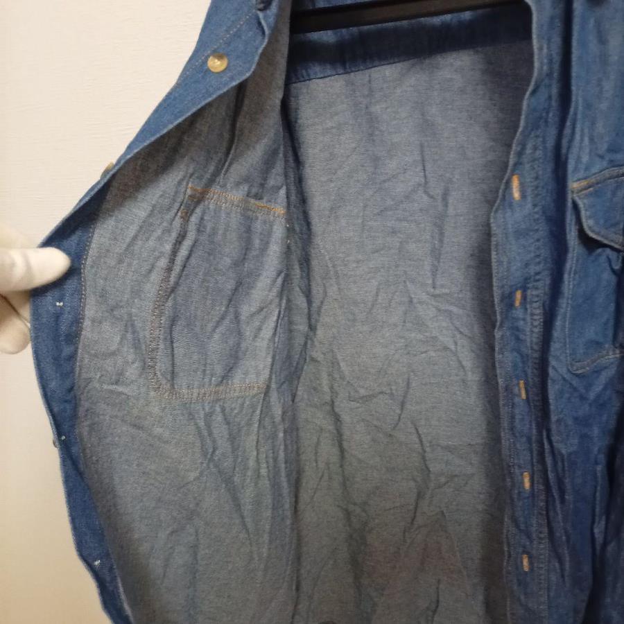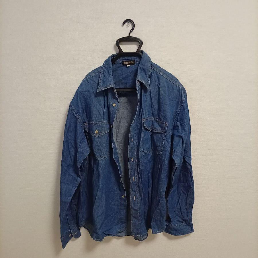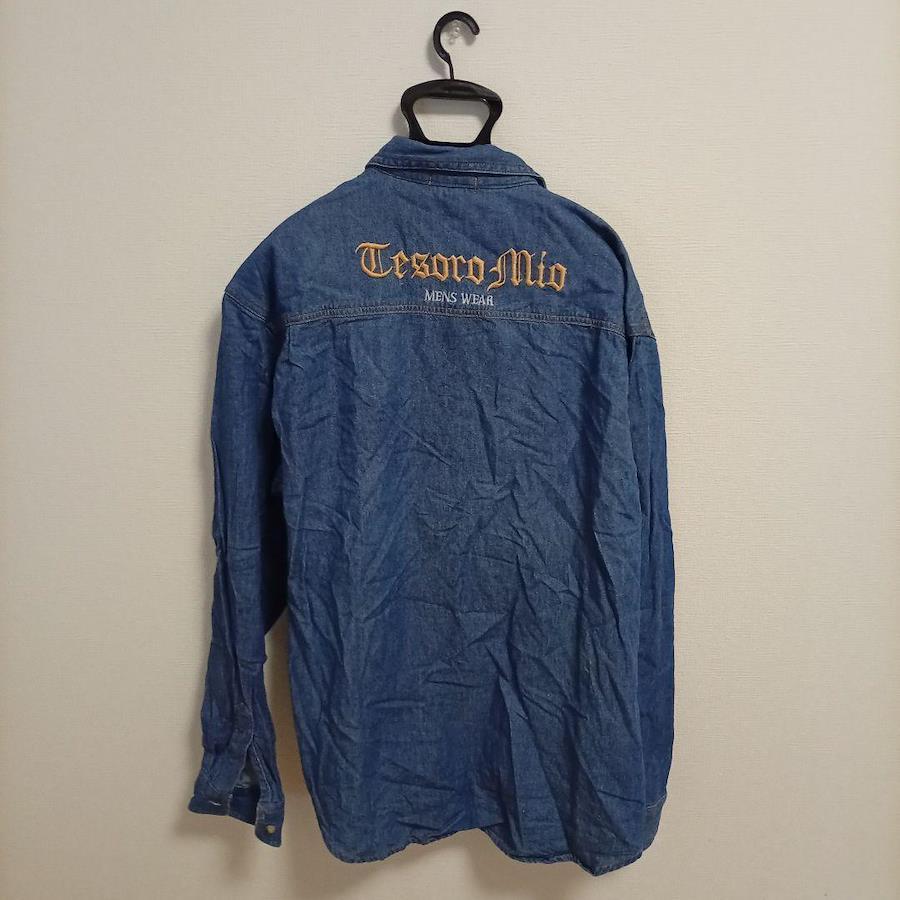 こちらは刺繍デザインの青いデニムシャツ、メンズ用になります。
