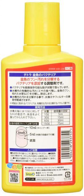 サイズ:250ml◆商品名:テトラ(Tetra)金魚のバクテリア250ミリリットル水槽の汚れを分解するお掃除バクテリア添加剤バチルス菌がフンを分解はたらく善玉菌にごりもスッキリ長期保存可能
