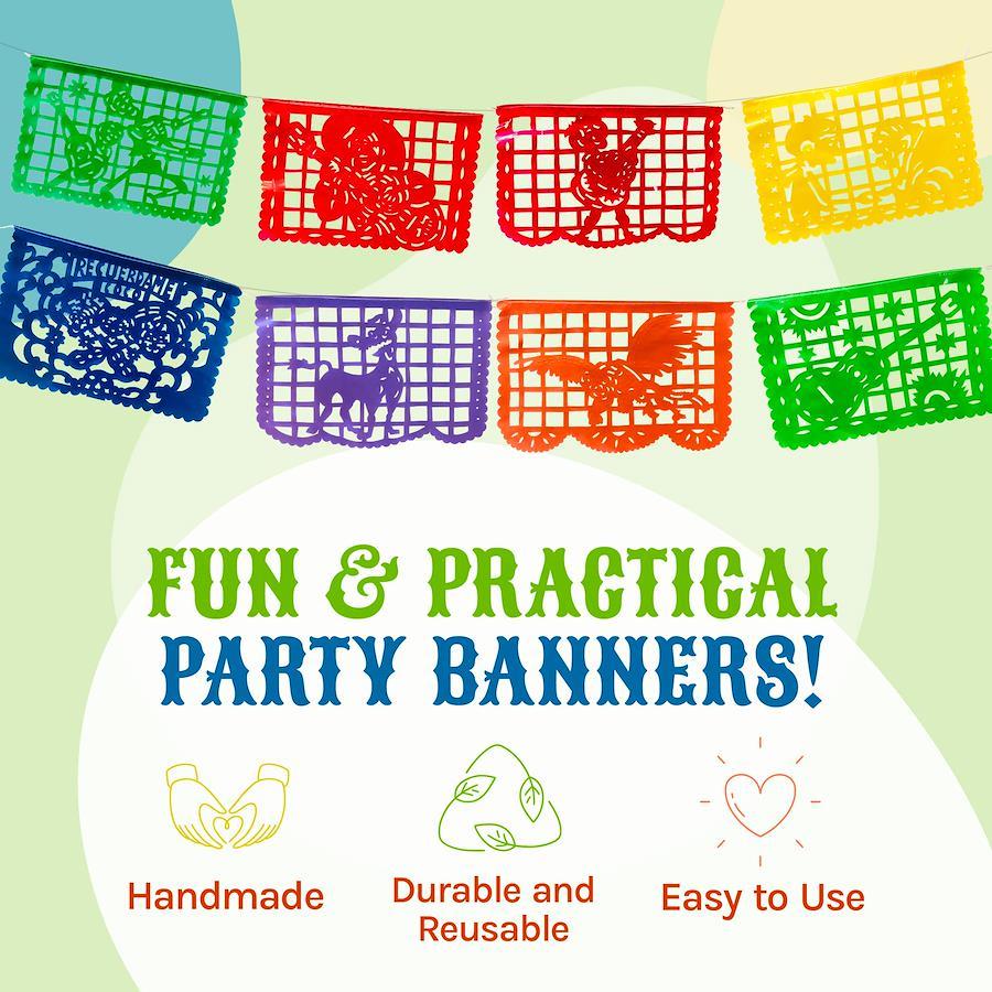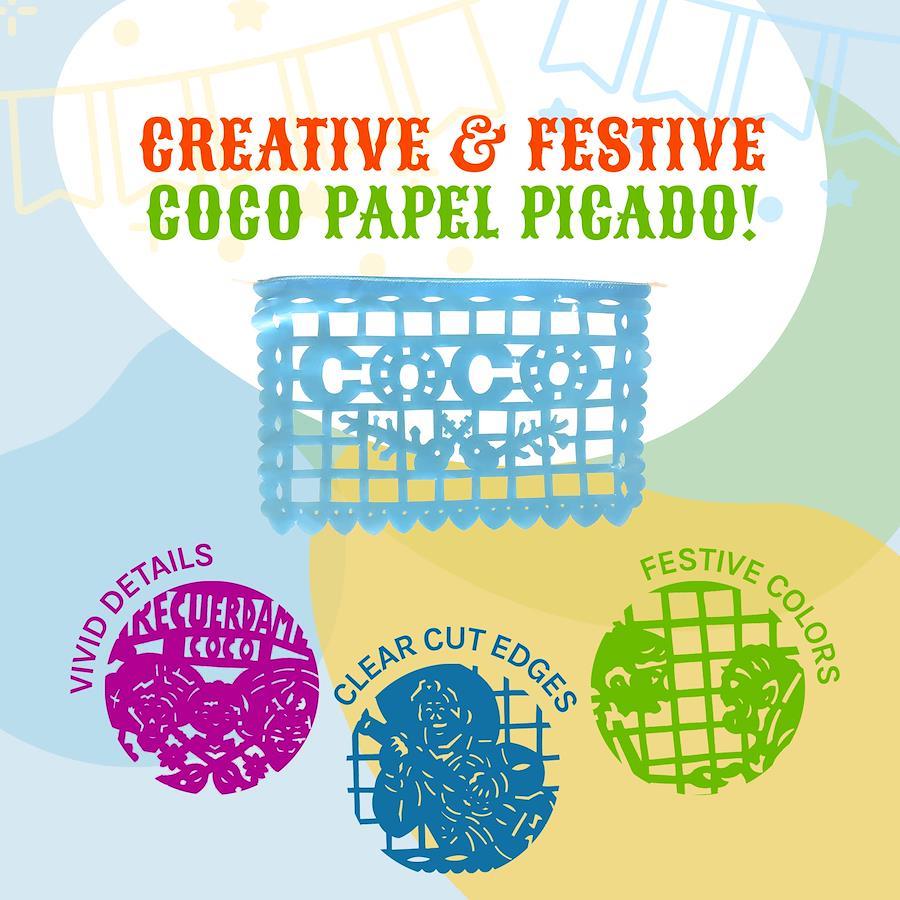 2本のココをインスパイアしたカンティナスタイルのバナーで、春祭りやシンコ・デ・マヨのお祝いをさらに華やかにしましょう。 各フラッグは高さ8.5インチ、幅12.5インチ、24個が含まれています。 各16フィートの紐は吊るしやすく、ママココはとても誇りです。