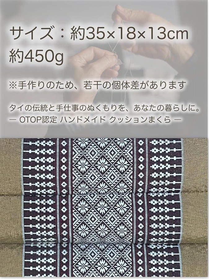 見た目も使い心地もあたたかい「イサーン伝統のまくら」で、暮らしに癒しのひとときをお届けします。