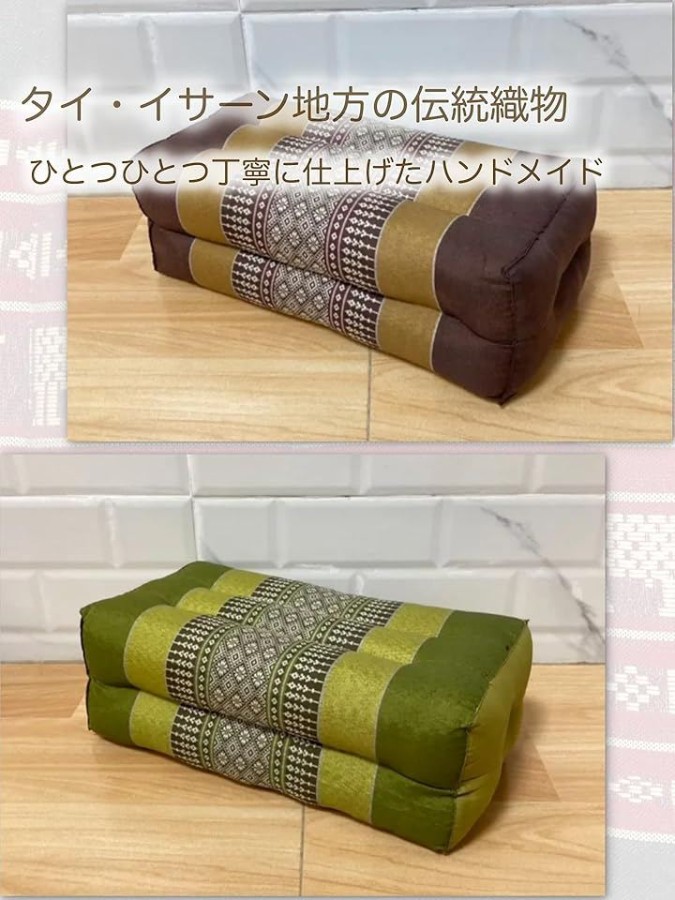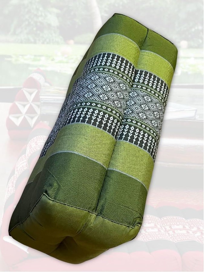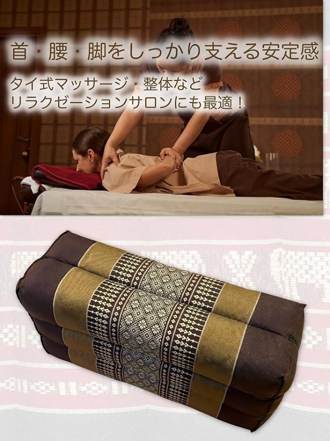 タイ古式マッサージの枕としても使われるデザインで、マッサージ中の頭・首・脚・腕の支えにぴったり。