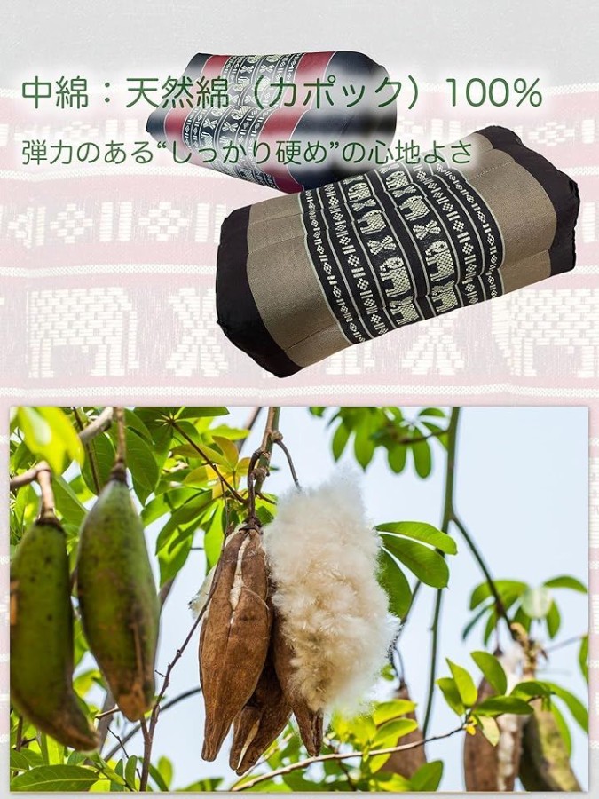 中綿にはxx天然綿(カポック)100%xxを使用し、しっかりと詰め込まれています。