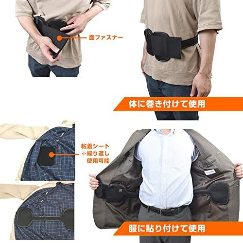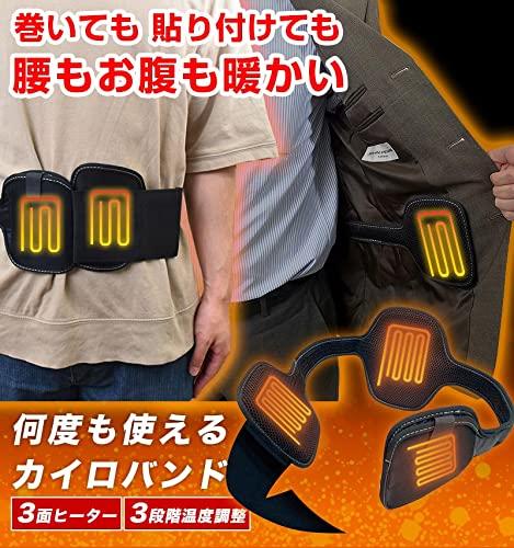 服に貼り付けても体に巻き付けても使える!何度も使えて温度調整可能なヒーターカイロバンド着ぶくれしないのに暖かい。何度も使えて温度調整もできるヒーターバンドです。直接体に巻き付けるだけではなく、自分の服に貼り付けて使用することができます。外での作業では電源オンに、暖房の効いた室内ではオフに、といった使い方がラクにできます。安全警告