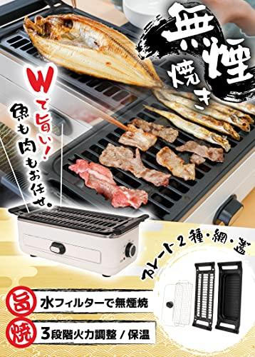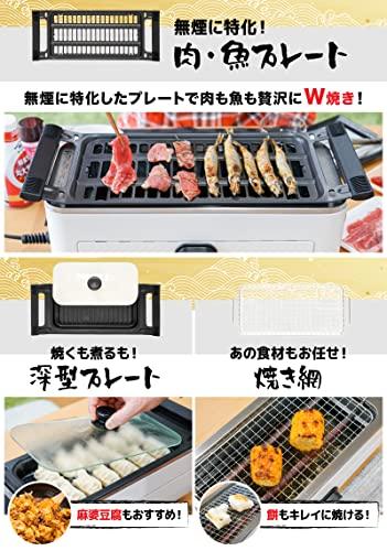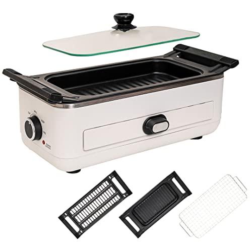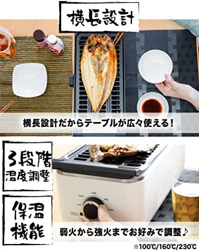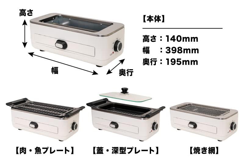 通常1-5営業日で発送:【サイズ】高さ140×幅398×奥行195(mm) 【重量】本体:2170g、深型プレート:424g、蓋:420g、肉/魚プレート:412g、焼き網:97g【ケーブル長】約70cm 【素材】本体:SUS409+アルミ、深型プレート:ステンレス材+ナイロン、蓋:ガラス+ナイロン、肉/魚プレート:アルミ+ナイロン、網:SUS304【電源】AC100V 50/60Hz 【定格消費電力】1000W 【安全装置】サーモスタット:低/100°C ±20°C、中/160°C ±20°C、高/230° C ±20°C 【温度ヒューズ】:108℃ 【最高温度】230℃【内容品】本体、蓋、蓋つまみ、ネジ×1、ワッシャー×1、深型プレート、肉/魚プレート、焼き網、日本語取扱説明書 【保証期間】購入日より12カ月【パッケージサイズ】幅480×高さ215×奥行220(mm) 【パッケージ込み重量】約3.6kg