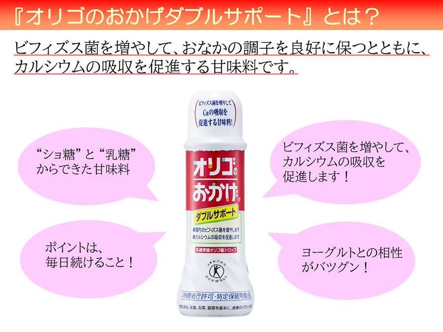 ヨーグルトなどカルシウムを含む食品と一緒に召し上がると効果的です。おいしい甘さはお砂糖の約50%と控えめで気になるカロリーは2.1kcal/gです。1日当りティースプーン2杯(8g)を目安にお使いください。
