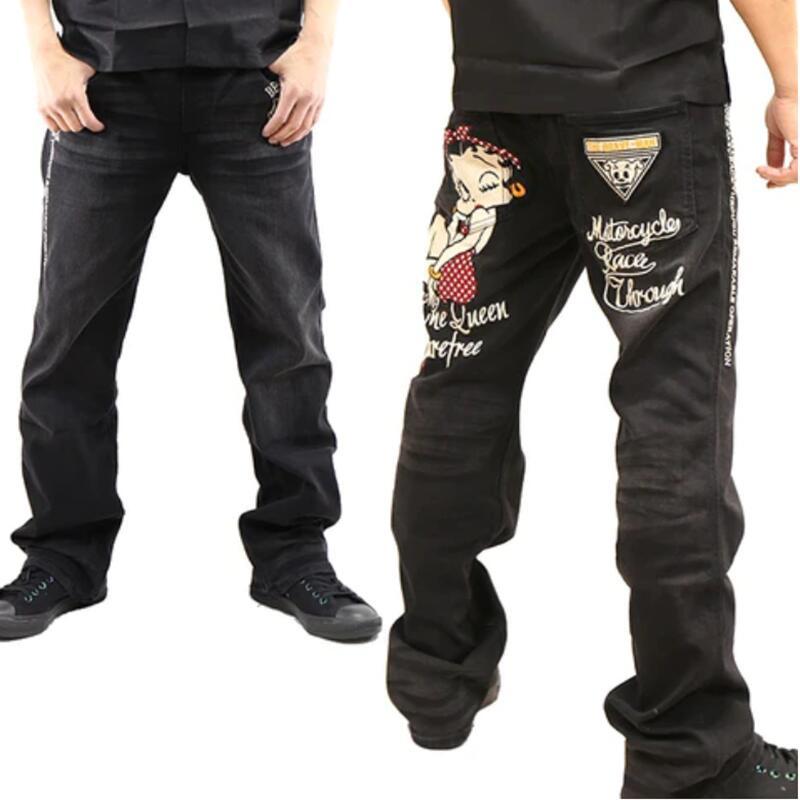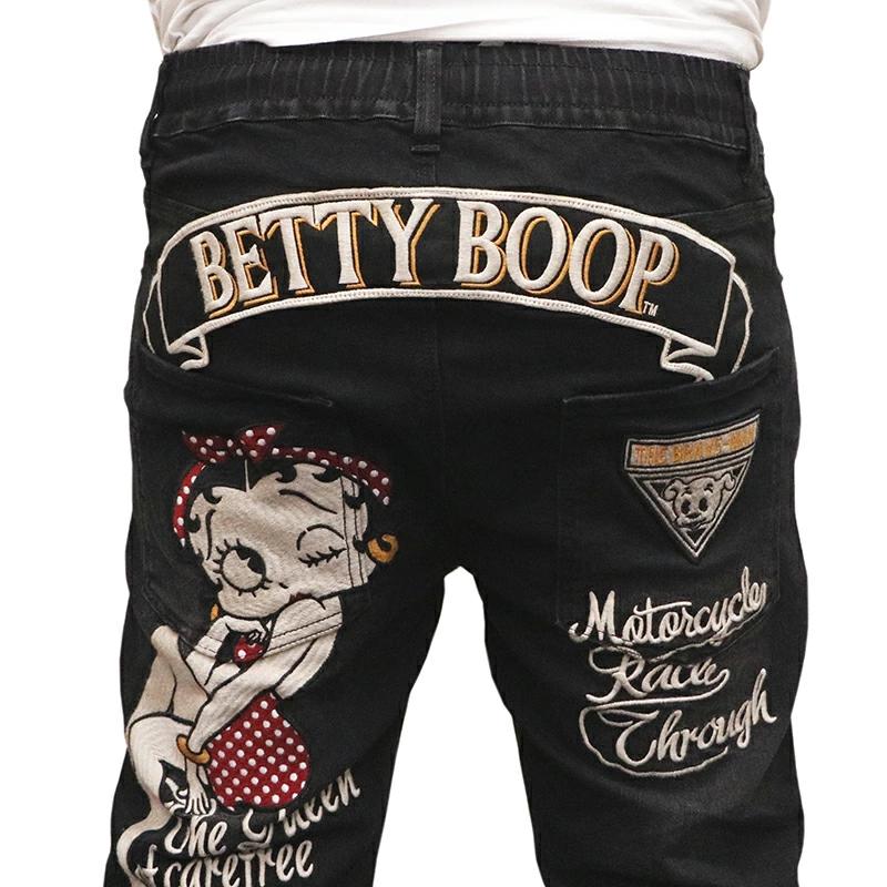 THE BRAVEMAN×BETTY BOOP Betty Embroidery Stretch Denim Pants (BBB-2222) Denim Jeans Stretch Pants Embroidery Indigo Black