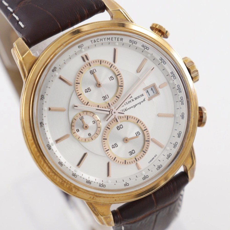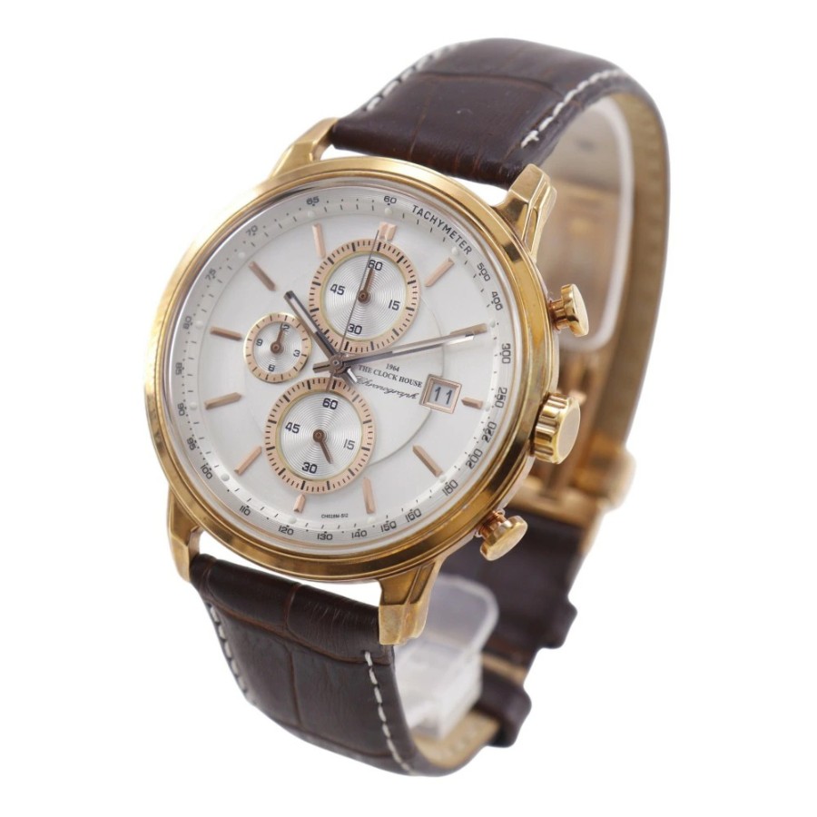 #THE CLOCK HOUSE#腕時計#カラー:ブラウン系#ランクB+#ステンレススチール#レザー#メンズ#ホワイト文字盤