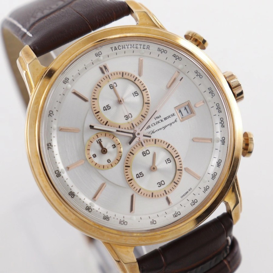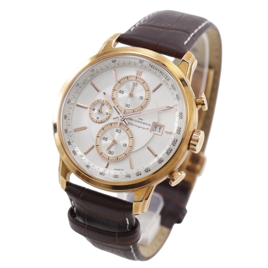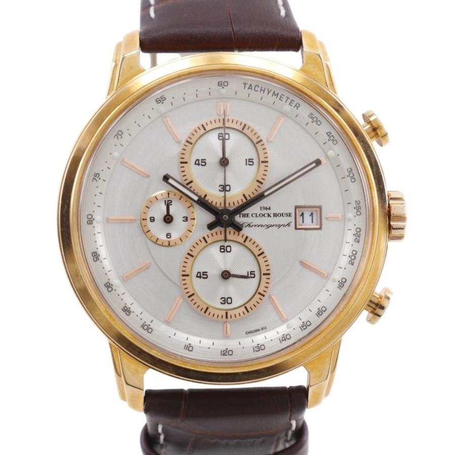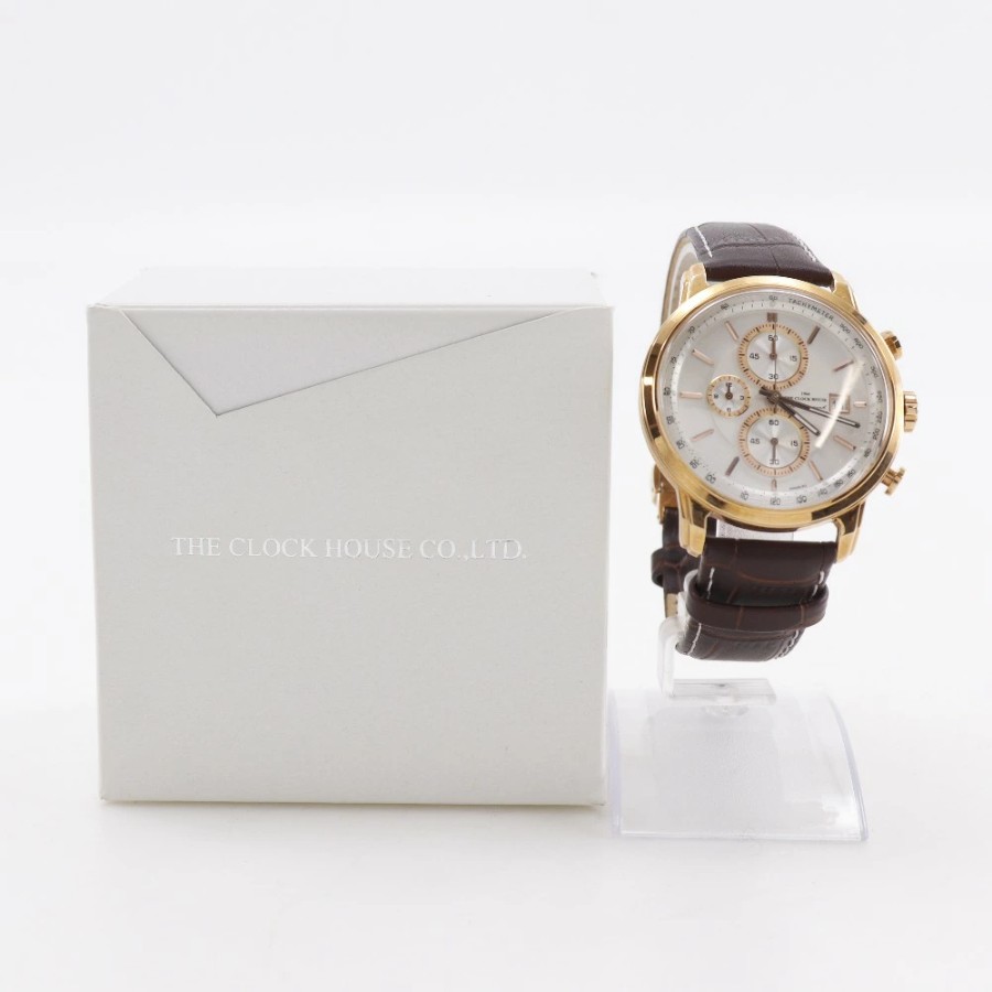 #THE CLOCK HOUSE#腕時計#カラー:ブラウン系#ランクA-#ステンレススチール#レザー#メンズ#ホワイト文字盤