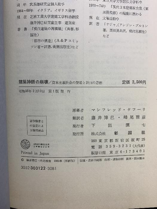 The Collapse of Architectural Myths: The Development of Capitalist Society and the Idea of Planning, Shokokusha, Manfredo Tafuri