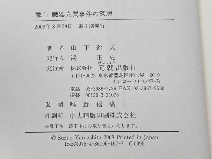 商品名:激白臓器売買事件の深層: 腎移植患者が見た光と闇 元就出版社 山下 鈴夫