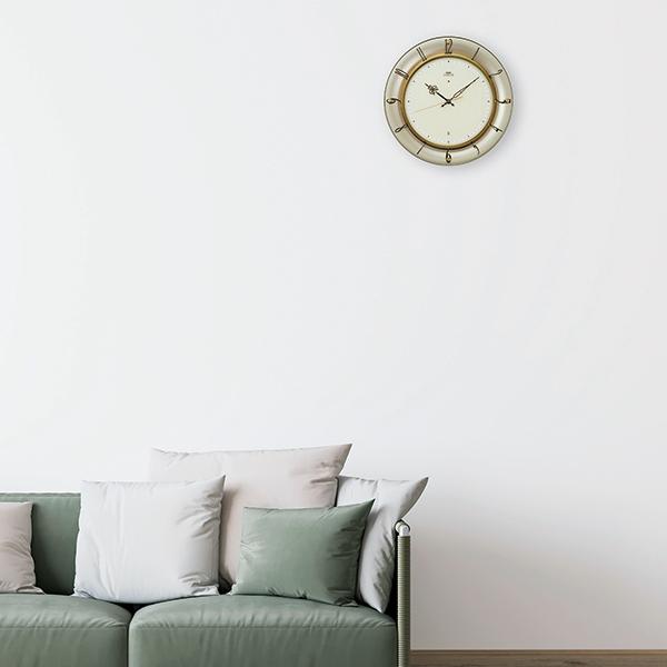 ・製品番号:HS561G・枠材:プラスチック枠(薄金色パール塗装)前面:ガラス・サイズ・重さ:直径330x46mm 1.3kg・電池:単3型(アルカリ)×2 (電池寿命約5年間)※マクセル アルカリ乾電池「ボルテージ」をご使用ください◎機能・電波修正機能(40kHz/60kHz自動選局・受信OFF機能つき)・光センサーによる自動秒針停止機能(おやすみ秒針)・スイープセコンド・石膏ボード用掛金具つき◎取扱説明書・保証書付き・新品