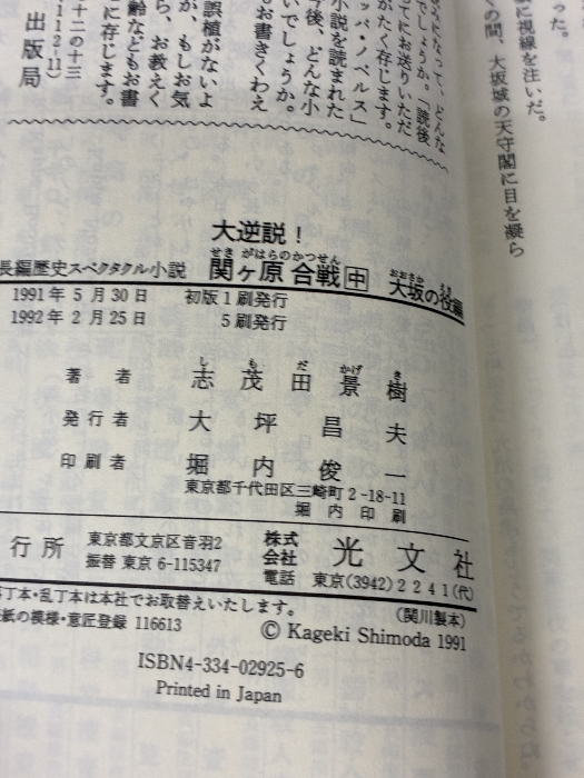 ■商品詳細■ 商品名・大逆説関ヶ原合戦 大坂の役編 (カッパ・ノベルス) 光文社 志茂田 景樹/ ■商品状態■表紙にスレ、ヤケ、多少の傷み、天地小口にスレ、ヤケ、キズ、本にスレ、ヤケ、があります。本を読むことに支障はございません。※注意事項※■毎商品チェック後出品しておりますが、中古品ということもあり、多少の書き込み等のチェック漏れがあった際はご容赦下さい。■付録等の付属品がある商品の場合、記載されていない物は『付属なし』とご理解下さい。■併売販売をしているため、在庫切れの場合はキャンセルとなります。予めご了承ください。