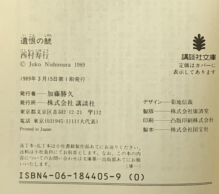 The Grudgeful Orca (Kodansha Bunko 3-19) Kodansha Toshiyuki Nishimura