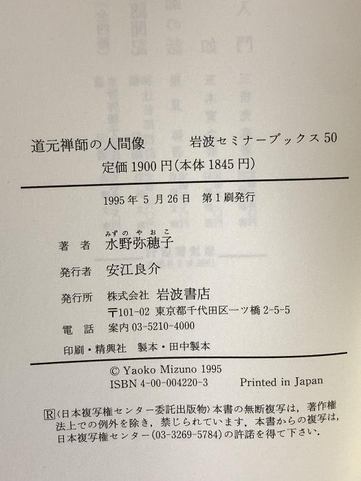 The Image of Zen Master Dogen as a Person (Iwanami Seminar Books 50) Iwanami Shoten Mizuno Yahoko