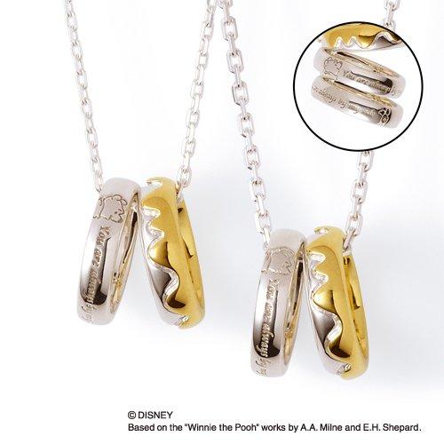 ★【ブランドコンセプト】ペアジュエリーブランド「THE KISS」は世界中のカップルの幸せのお手伝いをいたします。気軽に身に着けられるペアアクセサリーとして人気のペアネックレス。さりげなく胸元を彩ることのできるおすすめアイテムです。ペアジュエリーブランドのTHE KISS(ザ・キッス)では、様々なカップルに身に着けていただけるようユニセックスなデザインを豊富に取り揃えていますので、ふたりの気持ちにぴったりなペアネックレスが見つかります。★【商品説明】プーさんとピグレットのフェイスの刻印をしたリングと、とろけるような甘いハチミツをかけたリングを組み合わせた2連ネックレス。 仲良しの2人のイラストの間には「You are always by my side(いつも君はそばにいる)」のメッセージ。 大切な人とずっと一緒にいたい、そんな2人の甘い気持ちをネックレスに込めて。★【シルバー925】素材は人気のシルバー925を使用。THE KISSのシルバージュエリーは銀含有率92.5%のスターリングシルバーです。スターリング(sterling)には「本物」、「一流の」といった意味があり、世界中で愛されている素材です。[原産国]日本★【ラッピングショッパー&BOX付!】全てのご注文にラッピングを付けてお届けしております。 プレゼントにも是非ご利用くださいませ。◎誕生日、母の日、クリスマス、ホワイトデー、大切な記念日のギフトに最適です。★【レディースサイズ】[寸法]ハチミツ/約3.3×1.7mm シルバー/約2.7×1.3mm(幅×厚み) [重さ]約4.7g [素材]SV925シルバー [チェーン品番]CA35S-40 [チェーン長さ]40cm [加工]コーティング【メンズサイズ】[寸法]ハチミツ/約3.3×1.7mm シルバー/約2.7×1.3mm(幅×厚み) [重さ]約4.7g [素材]SV925シルバー [チェーン品番]CA45S-50 [チェーン長さ]50cm [加工]コーティング