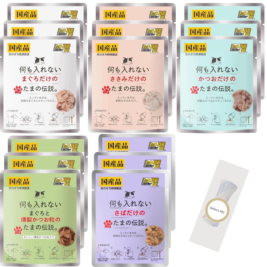 The Legend of Tama with Nothing Inside [Popular 5 Varieties, 15-Pack] Pouches: Tuna, Chicken Fillet, Bonito, Tuna and Smoked Bonito Grains, Mackerel, 35g, 5 Varieties x 3 Bags, Total 15 Bags, Includes Original Toy