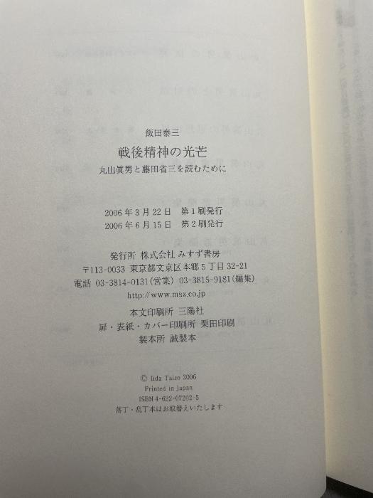 a03-251107002003015-000戦後精神の光芒―丸山眞男と藤田省三を読むために みすず書房 飯田 泰三