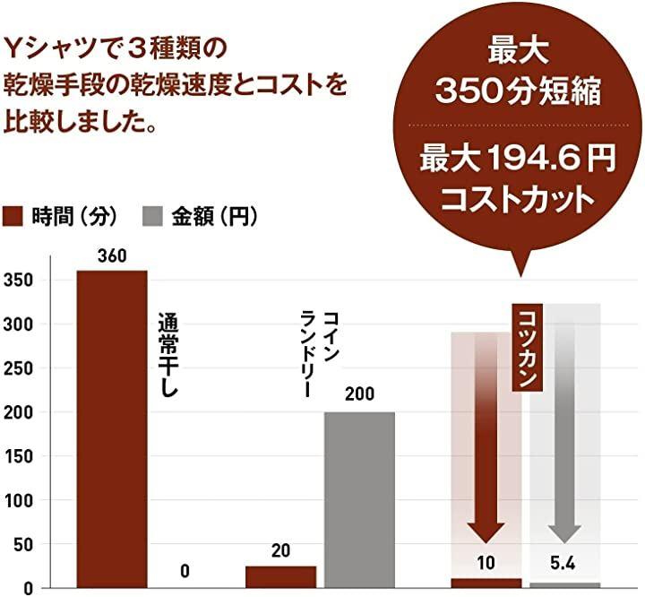 ・*乾燥時間(目安・約)ドライヤー温風使用時:Yシャツ・ポロシャツ/10分、Tシャツ/5分ほか *脱水・生地の状況による