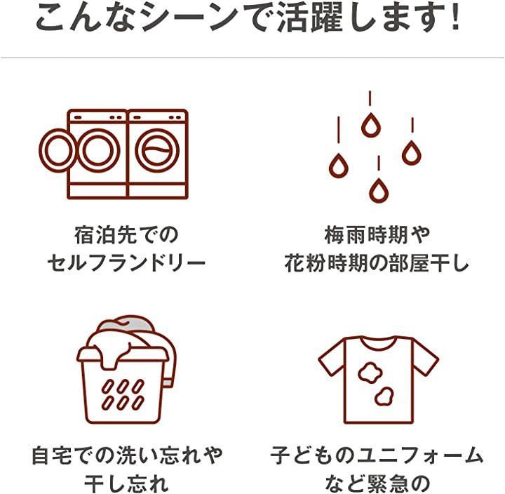 持ち運びに最適な「薄くて軽い」を実現、靴下からYシャツ、ワンピース、柔道着までの衣類乾燥に対応しています。