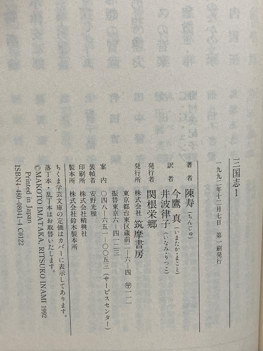 The Records of the Three Kingdoms 1 (Chikuma Gakugei Bunko Chi 1-1) Chikuma Shobo Chen Shou