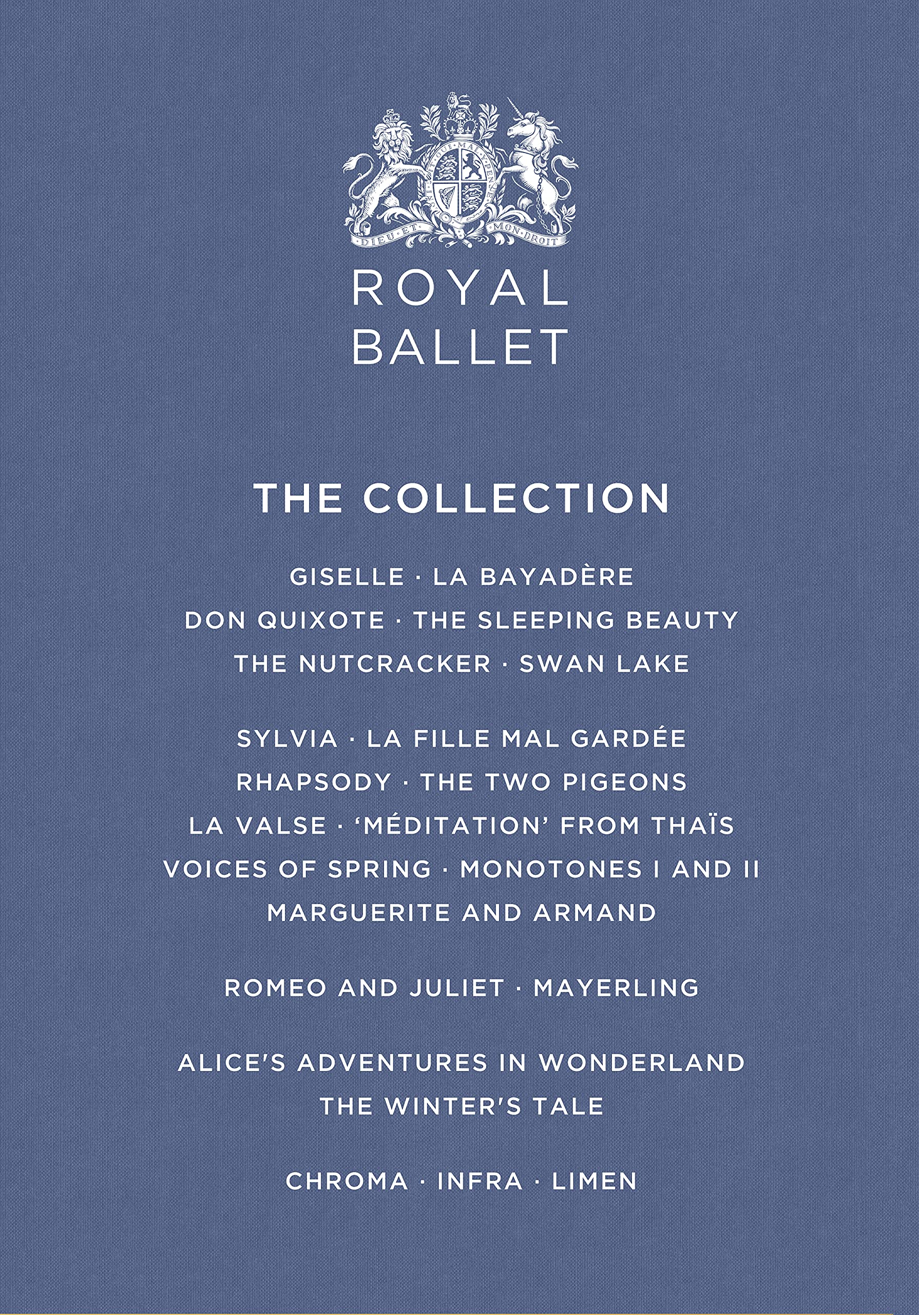 英国ロイヤル・バレエ「ザ・コレクション」BOX【収録内容】【Disc 1】ジゼル(2014)ジゼル:ナタリア・オシポワアルブレヒト:カルロス・アコスタ振付:マリウス・プティパ音楽:アダン【Disc 2】ラ・バヤデール(2009)ニキヤ:タマラ・ロホソロル:カルロス・アコスタガムザッティ:マリアネラ・ヌニェス振付:ナタリア・マカロワ音楽:ミンクス【Disc 3】ドン・キホーテ(2013)キトリ:マリアネラ・ヌニェスドン・キホーテ:クリストファー・サウンダース振付:カルロス・アコスタ音楽:ミンクス【Disc 4】眠れる森の美女(2006)オーロラ姫:アリーナ・コジョカルフロリムント:フェデリコ・ボネッリリラの精:マリアネラ・ヌニェス振付:マリウス・プティパ音楽:チャイコフスキー【Disc 5】くるみ割り人形(2009)こんぺい糖の精:吉田都王子:スティーヴン・マクレー振付:ピーター・ライト音楽:チャイコフスキー【Disc 6】白鳥の湖(2009)オデット:マリアネラ・ヌニェスジークフリート王子:ティアゴ・ソアレス振付:アンソニー・ダウエル音楽:チャイコフスキー【Disc 7】シルヴィア(2005)シルヴィア:ダーシー・バッセルアミンタ:ロベルト・ボッレ振付:フレデリック・アシュトン音楽:ドリーブ【Disc 8】ラ・フィーユ・マル・ガルデ(2015)リーズ:ナタリア・オシポワコーラス:スティーヴン・マクレー振付:フレデリック・アシュトン音楽:エロール【Disc 9】ラプソディ/二羽の鳩(2016)○ ラプソディナタリア・オシポワスティーヴン・マクレー振付:フレデリック・アシュトン音楽:セルゲイ・ラフマニノフ○二羽の鳩娘:ローレン・カスバートソン若者:ワディム・ムンタギロフジプシーの娘:ラウラ・モレーラその恋人:平野亮一振付:フレデリック・アシュトン音楽:アンドレ・メサジェ【Disc 10】アシュトン・セレブレーション(2013)○ ラ・ヴァルス小林ひかる/平野亮一/サマンサ・レイン○ タイスの瞑想曲リャーン・ベンジャミン/ワレリー・フリストフ○ 春の声崔由姫/アレクサンダー・キャンベル○ モノトーンズ I & II高田茜/マリアネラ・ヌニェス/フェデリコ・ボネッリ/エドワード・ワトソン○ マルグリットとアルマンタマラ・ロホ/セルゲイ・ポルーニン/ギャリー・エイヴィス振付:フレデリック・アシュトン【Disc 11】ロミオとジュリエット(2012)ジュリエット:ローレン・カスバートソンロミオ:フェデリコ・ボネッリ振付:ケネス・マクミラン音楽:セルゲイ・プロコフィエフ【Disc 12】マイヤリング(うたかたの恋)(2009)ルドルフ皇太子:エドワード・ワトソンマリー・ヴェッツェラ:マーラ・ガレアッツィ振付:ケネス・マクミラン音楽:フランツ・リスト【Disc 13】不思議の国のアリス(2011)アリス:ローレン・カスバートソンハートのジャック:セルゲイ・ポルーニン振付:クリストファー・ウィールドン音楽:ジョビィ・タルボット【Disc 14】冬物語(2014)レオンティーズ:エドワード・ワトソンハーマイオニー:ローレン・カスバートソンバーディタ:サラ・ラムパウリーナ:ゼナイダ・ヤノウスキーフロリツェル:スティーヴン・マクレーポリセネス:フェデリコ・ボネッリ振付:クリストファー・ウィールドン音楽:ジョビィ・タルボット【Disc 15】マクレガー・トリプル・ビル (クローマ/インフラ/リーメン)(2006-09)タマラ・ロホ(クローマ)フェデリコ・ボネッリ(クローマ)エドワード・ワトソン(クローマ/インフラ/リーメン)サラ・ラム(クローマ/リーメン)ローレン・カスバートソン(インフラ/リーメン)スティーヴン・マクレー(リーメン)振付:ウエイン・マクレガー収録総時間:約36時間8分音声:PCMステレオ2.0/DTS5.0(DVD)画角:16/9 NTSC All RegionDVD…片面二層ディスク【大好評BOX、新装版にて登場! 】バレエ・リュスで活躍したデイム・ニネット・ド・ヴァロワが1931年にロンドンに設立したバレエ団がいく度かの変遷を経て1956年に英国王室の詔勅(ロイヤル・チャーター)を受け、コヴェント・ガーデン王立歌劇場に本拠をおく王立バレエ団(英国ロイヤル・バレエ)となりました。設立当初からのアシュトンやマクミランに代表される演劇性の高い振付は同バレエ団の伝統として脈々と現代に受け継がれています。本コレクションは2016年、英国ロイヤル・バレエのロイヤル・チャーター60周年を記念して、世界のバレエ界の頂点に輝く同バレエ団のクラシック・バレエの代表作にコンテンポラリー作品を加えたレパートリーを大集成。ロホ、ヌニェス、コジョカル、吉田都、カスバートソン、アコスタ、マクレー、ワトソン、ボネッリ、2016年にプリンシパルに昇格した高田茜、平野亮一も登場、綺羅星を並べるスターダンサー出演の「ザ・コレクション」の名に相応しい英国ロイヤル・バレエの精華を、すべてのバレエ愛好家にお届けします。多くの図版、写真を含む豪華解説書付!