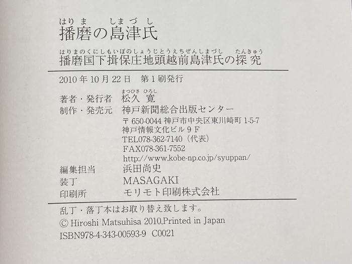商品名:播磨の島津氏: 播磨国下揖保庄地頭越前島津氏の探究 神戸新聞総合印刷 松久 寛