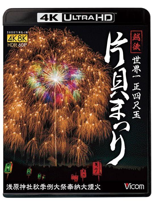 日本一 世界一 正三・四尺玉 新潟・越後三大花火の一つ『片貝まつり』は約400年の歴史と伝統を持ち、三尺玉発祥の地である片貝町で毎年9月9日、10日に開催される。祭りの期間中は約20万人もの人出で賑わい、浅原神社への奉納花火のため人々の願いや祈りが詰まった打ち揚げ花火である。『筒引き』『玉送り』などの伝統行事や、尺玉の打ち揚げ花火を中心に日本一の『正三尺玉』と世界一を誇る『正四尺玉』の大輪の花火は観る者を圧倒する。また花火の打ち揚げ場所の後ろが屏風状の小高い山になっており、花火の音が反射するため豪快な破裂音も魅力の一つである。今作品は2日間開催される片貝まつりの様子と、打ち揚げ花火を凝縮しまとめた作品。一発一発の儚くも可憐な花火や、超特大スターマインの豪華で華々しい連発花火、そして日本一と謳われる大輪の正三尺玉、世界最大級の正四尺玉は夜空を花火で覆い尽くし、体の芯に響き渡る爆音とともに感動の渦が押し寄せてくる。超高画質の4K/8K60P撮影で、夜空を彩る大輪の花火と微細な火花の粒を再現。花火の破裂音の響きとともにお楽しみください。※本作は4K・8K/60Pで撮影した映像を4Kにダウンコンバートして収録していますこのコンテンツを再生するにはUltraHDブルーレイ規格のレコーダー(又はプレーヤー)が必要です。従来のブルーレイやDVD機器では再生できません。また、HDRをお楽しみ頂くためにはHDR対応の4Kテレビ(又はプロジェクター)が必要です。HDR非対応の4KテレビやHDテレビでも視聴可能ですが、この場合はSDR(従来の色域)となります。