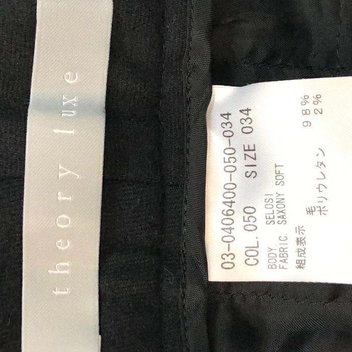 【管理番号】 014796s【ブランド名】 Theory luxeセオリーリュクス【アイテム】 ウールパンツ【サイズ】34【サイズ】 34 平置採寸(ウエスト:約35cm総丈:約91cm 股上:約23cm 股下:約68.5cm・わたり幅:約25cm・裾幅:約15.5cm)【色・柄】 ブラック【素材】 毛98%ポリウレタン2%【外観ランク】ABランク